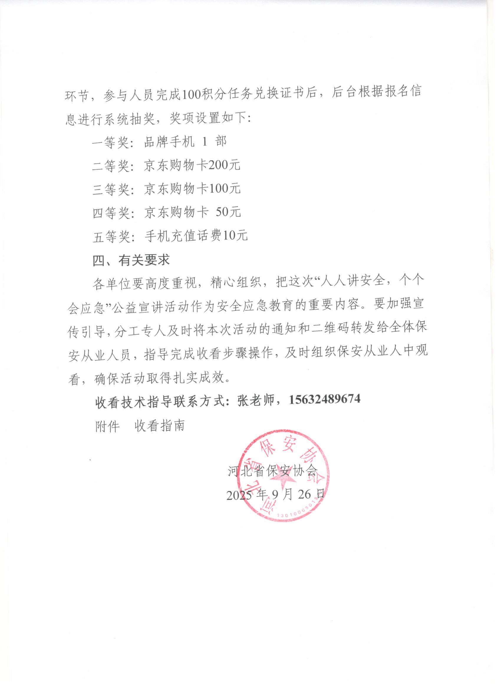 关于组织保安从业人员开展“人人讲安全个个会应急”公益宣讲活动的通知