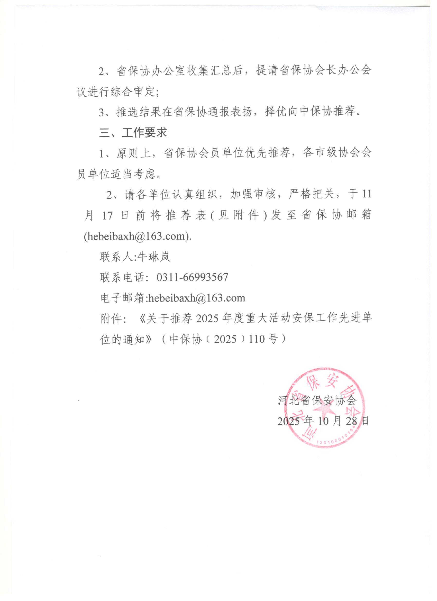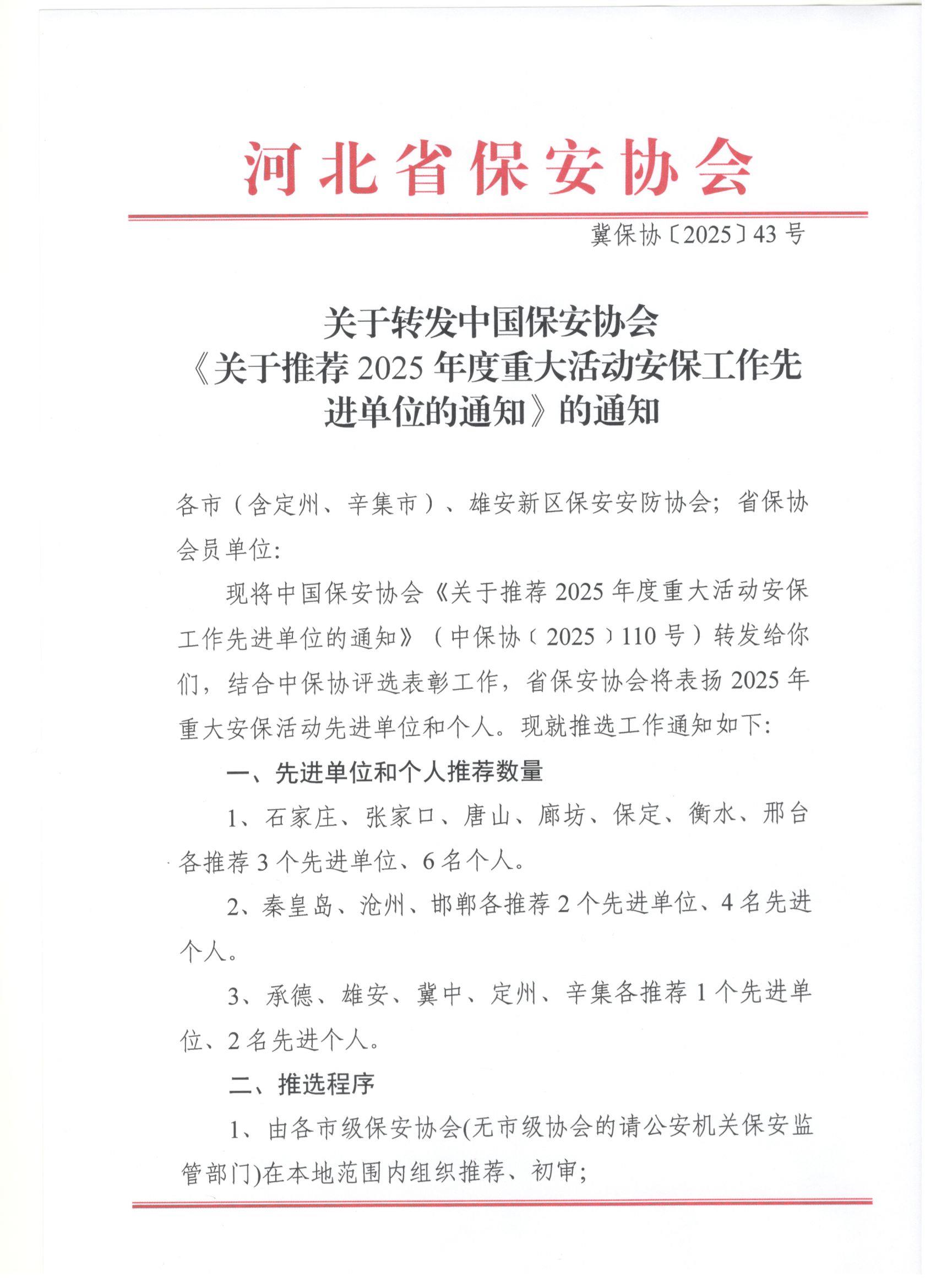 关于转发中国保安协会《关于推荐2025年度重大活动安保工作先进单位的通知》的通知