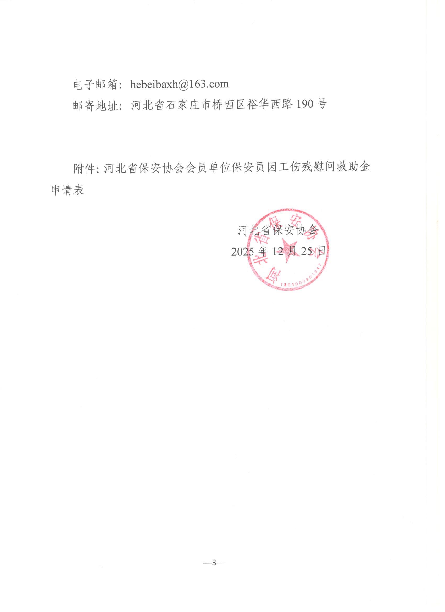河北省保安协会关于开展2025年度会员单位保安员因工伤残慰问救助活动的通知