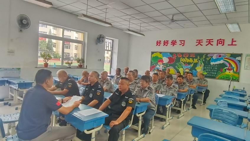 二是抓教育,注重安全防范。8月24日,组织13所学校保安员在迎宾路小学召开秋季开学安全教育培训会,公司副总经理兼第六大队长卢振涛传达学习校园管理规定和公司督察规定,并就如何提升保安员的职业素养、业务技能、安全防范、自我防护和最小应急单元处置水平进行教育培训,进一步增强安保人员的安全防范意识。