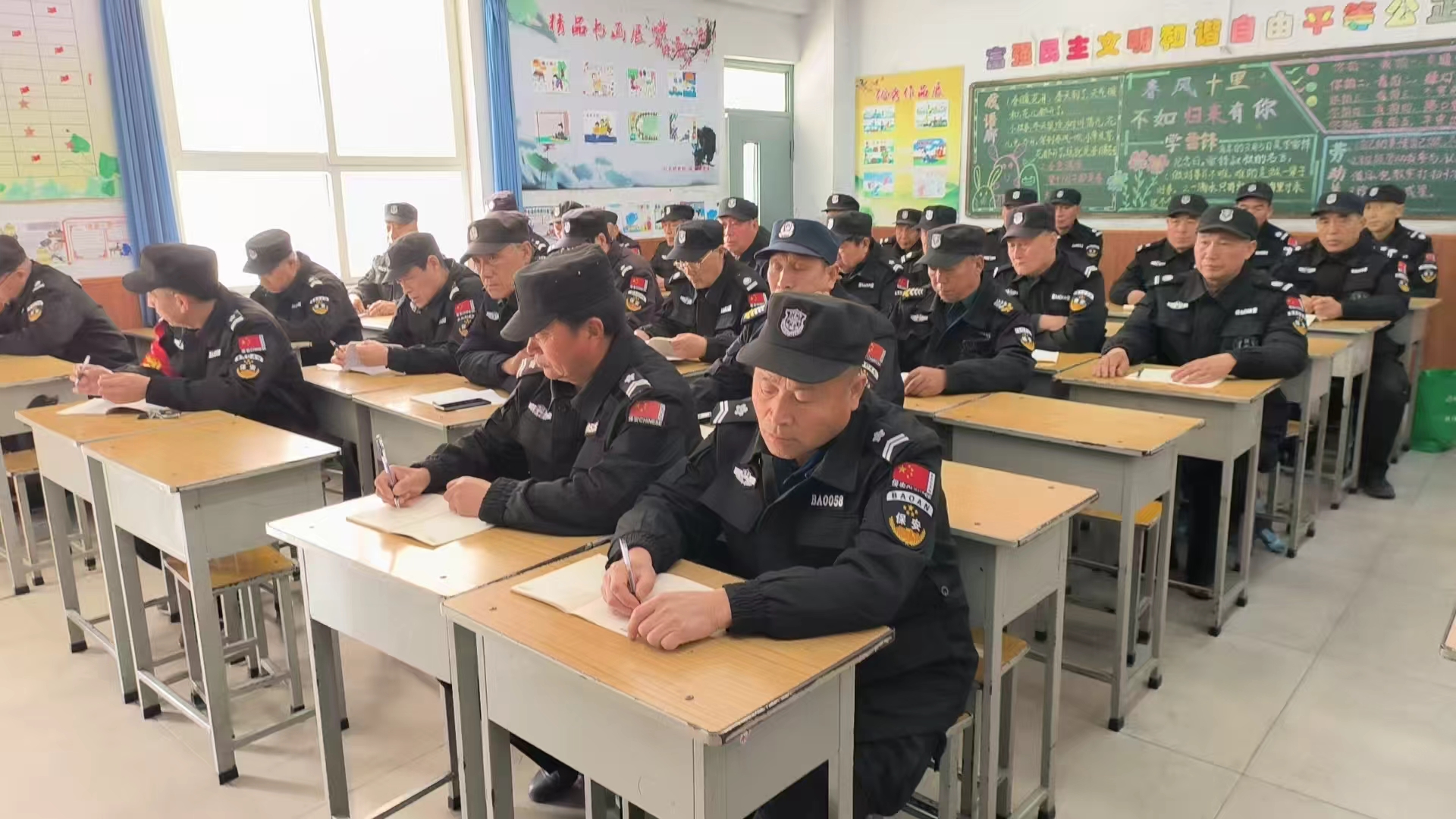 训练全程坚持严格要求、严格训练、严格管理,确保人员、时间、内容、效果四落实。参训队员认真做好学习笔记,系统学习保安员员工守则、保安员资格考试题库、保安员应知应会知识、基础队列、保安防卫器材使用和消防器材使用实际操作、应急处置等内容,同步开展队列素养、器械使用、现场协同等实操训练,真正做到学以致用。